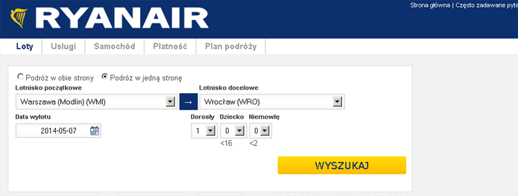 Loty Ryanair na trasie Wrocław Strachowice (WRO) - Warszawa Modlin (WMI) rozpoczną się w środę, 2 kwietnia 2014 roku. Trasa obsługiwana będzie raz dziennie, 7 dni w tygodniu. Loty obsługiwane będą przez samoloty Boeing 737. "Wrocław jest niezwykle ważnym lotniskiem dla linii Ryaniar. To tutaj w 2005 roku rozpoczęliśmy naszą ekspansję na polskim niebie, od ponad dwóch lat mamy bazę operacyjną, gdzie stacjonujemy już dwa samoloty. Jesteśmy przekonani, że połączenia lotnicze do Warszawy to oferta dla wszystkich, którzy szukają szybkiej i niedrogiej alternatywy dla podróży samochodem, busem czy pociągiem." - powiedział Michael Cawley, wiceprezes linii Ryanair. Wylot z Modlina przewidziany jest na 15:00. We Wrocławiu samolot lądować będzie o 15:55. W drogę powrotną samolot wyruszy o 16:20. Lądowanie na lotnisku w Modlinie o 17:20. Bilety lotnicze kosztują już od 99 zł. Na skróty