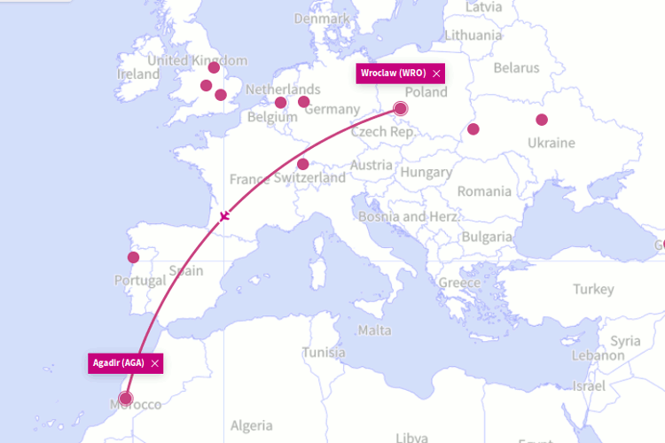 Bilety lotnicze na nowej trasie dostępne są już w sprzedaży od 109 zł w jedną stronę i zawierają bezpłatny bagaż podręczny o wymiarach maksymalnych 55x40x23cm. Połączenie wykonywane jest raz w tygodniu - w czwartek. "Maroko jest jednym z najbardziej oczekiwanych niskokosztowych połączeń zimowej siatki lotów z Wrocławia. To idealny kierunek dla wszystkich pasażerów, którzy jesienią i zimą chcą wypocząć w słonecznym miejscu. Doskonale uzupełnia naszą siatkę lotów na południe Europy reprezentowaną w tym sezonie przez Hiszpanię, Włochy czy Portugalię. Jestem przekonany, że Agadir powtórzy sukces pozostałych nowości, takich jak Lwów czy Rejkiawik, wprowadzonych w tym roku przez linie Wizz Air do naszej siatki lotów." - powiedział Dariusz Kuś, prezes wrocławskiego lotniska. Na skróty