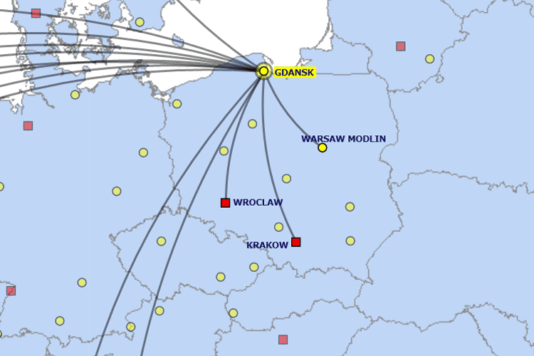 Loty na trasie Gdańsk Rębiechowo (GDN) - Wrocław Strachowice (WRO) rozpoczną się 1 lipca 2014 roku. Trasa będzie obsługiwana 3 razy w tygodniu - we wtorki, czwartki oraz soboty. Na trasie Gdańskiem a Wrocławiem Irlandczycy będą konkurować z polskimi liniami lotniczymi Eurolot. Na skróty